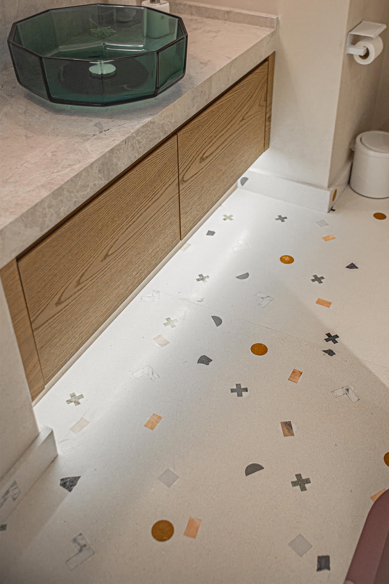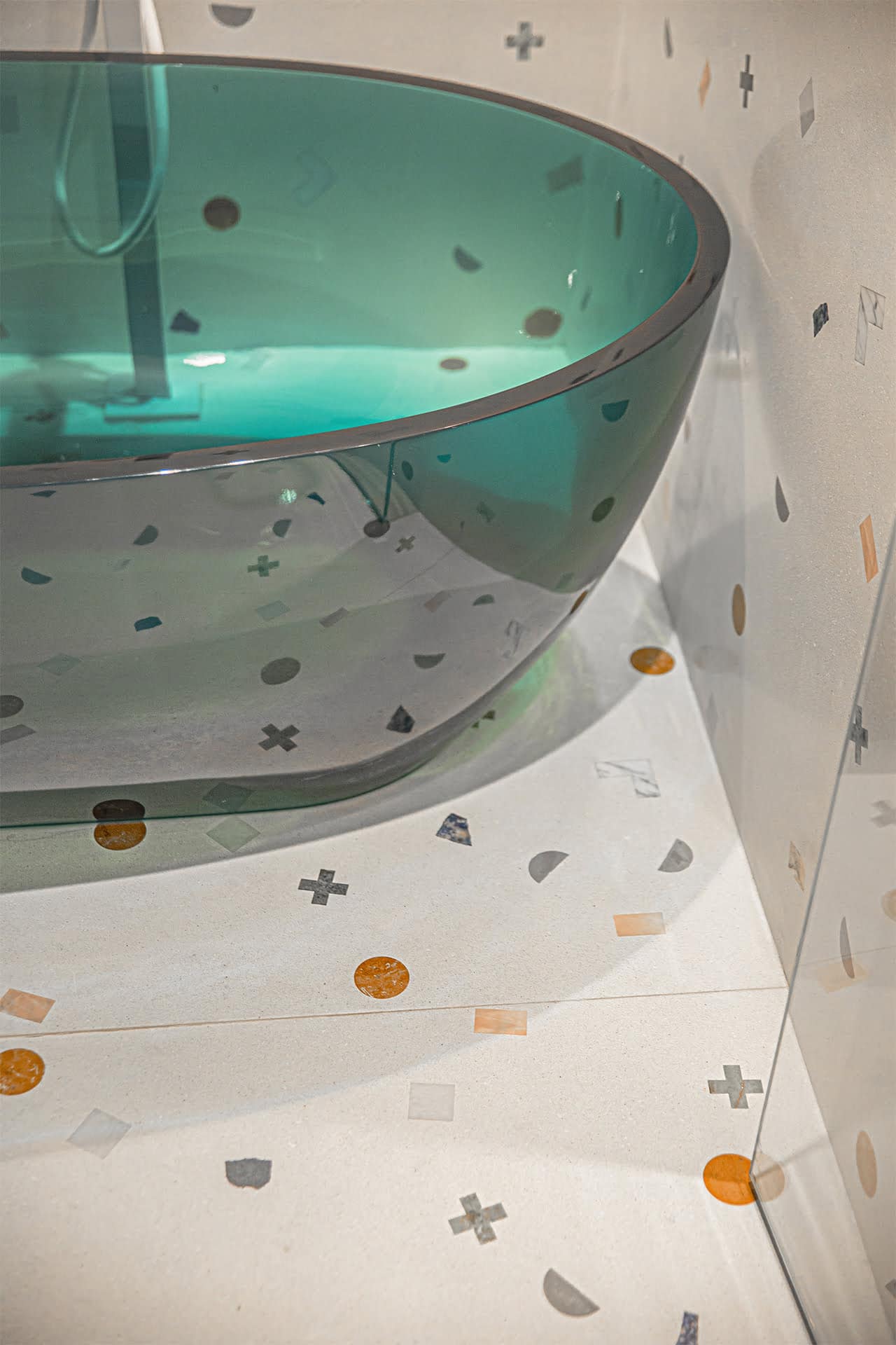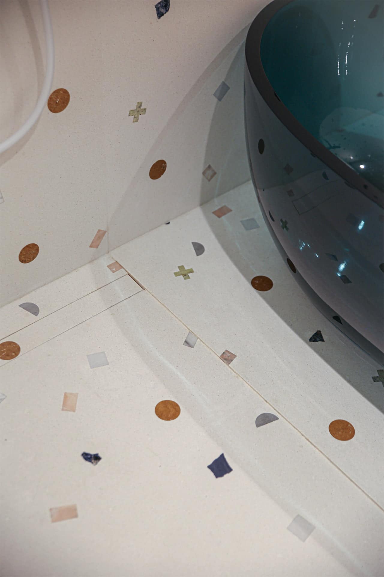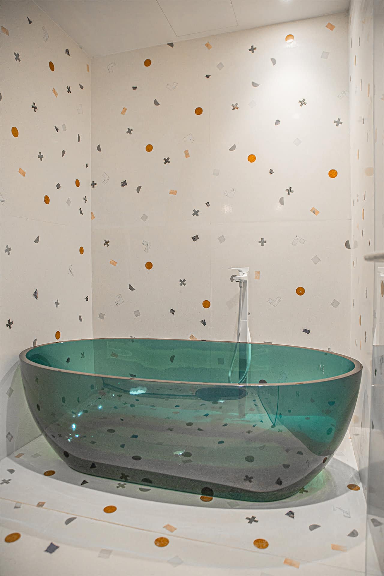 Eğlenceli renkler ve çarpıcı geometrik desenlerle bezenen banyo, çocukların yaratıcılığını destekleyerek banyo zamanını keyifli bir aktiviteye dönüştürüyor. Palezzo'nun özel tasarım ürünleri, yüksek kaliteli malzemeler ve Esra Kazmirci'nin uzmanlığıyla çocuk banyosuna estetik ve işlevsellik katarak ailelere benzersiz bir deneyim sunuyor.
