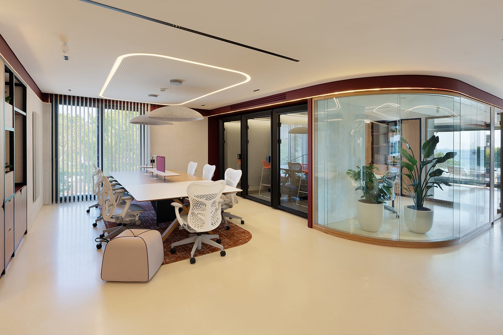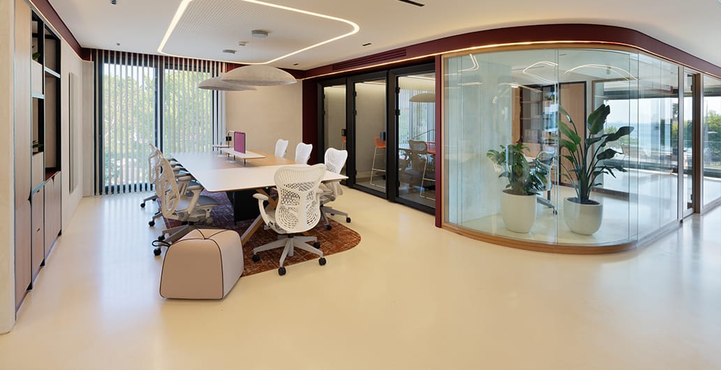 Palezzo'nun terrazzo tasarımlarıyla hayata geçirilen bu ofis projesi, estetik ve sürdürülebilirliği bir araya getiriyor. Geri dönüştürülmüş malzemeler kullanılarak üretilen Palezzo yüzeyler, modern çalışma alanlarına benzersiz bir karakter ve zarafet katıyor.